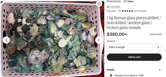 The Anglo-Saxons lacked the tools and technology to manufacture glass. Yet the Anglo-Saxons who are better-known than the Romans for their artistic re-use glass made by others - Sear-O-Gems (beads) ("searogemmas") and other works. https://wikiwand.com/en/Anglo-Saxon_glass…