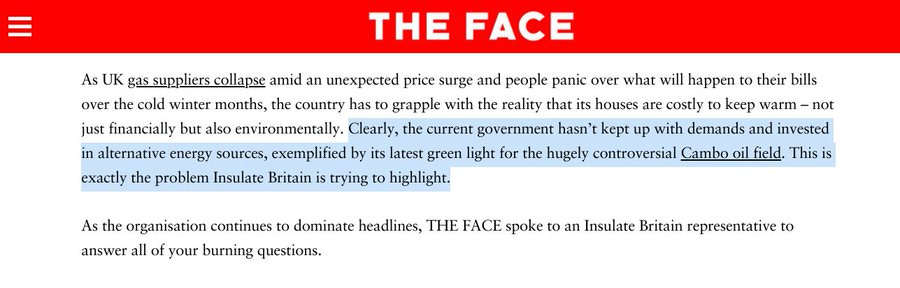 Naturally, the Insulate Britain movement "leaders" (using the term as narrowly as possible) occupy a fairytale world where insulation is self-evidently more important than Evil Petroleum. They must be planning to import the insulation.